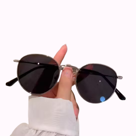 - Stylish oval sunglasses crafted with a premium silver metal frame.